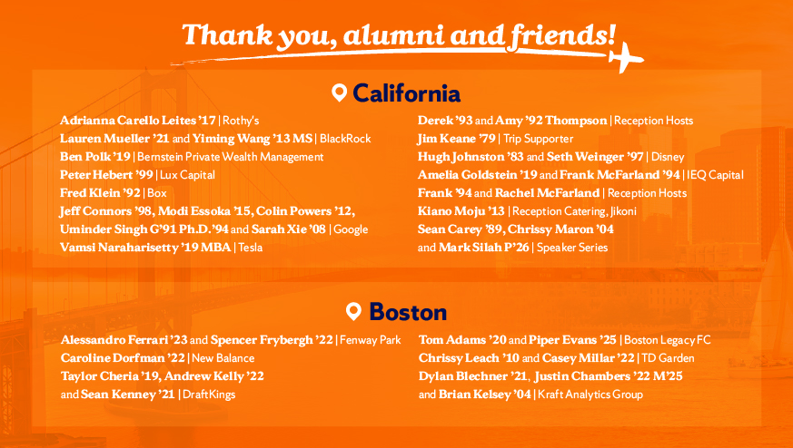 Whether exploring Silicon Valley's tech giants, Disney's storied studios, or Boston's sports business ecosystem, students return to campus with more than new contacts. They return with conviction, direction, and stories they'll carry for life.